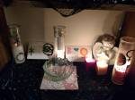 Lakshmi still has half a shelf. The other half is empty, sort of, for now. Her candle is empty so there’s a back up money-ish candle for Her right now until I can make Her a new one. Sigyn’s Bowl candle is pretty much done for too so I need to make another new one for that too. I think tomorrow will be a craft day between homework spells.