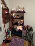 I don’t have my two storage cabinets that I used to have so a lot of the little bits and such are on the covered bottom shelf and also in the two drawer sets next to my shrine. I have no idea where I’m going to put my herbs so I’m just not going to worry about it right now LOL