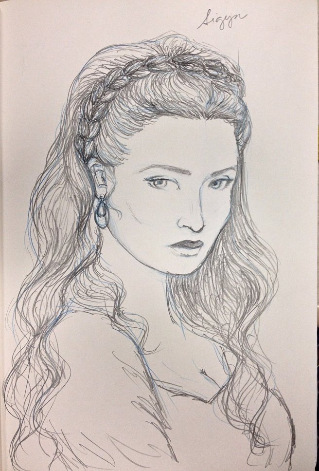 Well, well… That’s my Sigyn, inspired by Sophie Turner. I characterised her as an Asgardian princess, with a large braid making a tiara over her head. I’ve read many fanfic where authors said they were inspired by Sophie to make Sigyn’s character: she looks innocent, unlike Loki, who is the rogue in person.