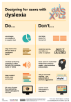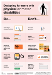 The dos and don’ts of designing for accessibility are general guidelines, best design practices for making services accessible in government. Currently, there are six different posters in the series that cater to users from these areas: low vision, D/deaf and hard of hearing, dyslexia, motor disabilities, users on the autistic spectrum and users of screen readers.