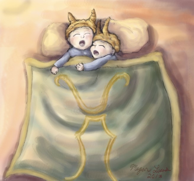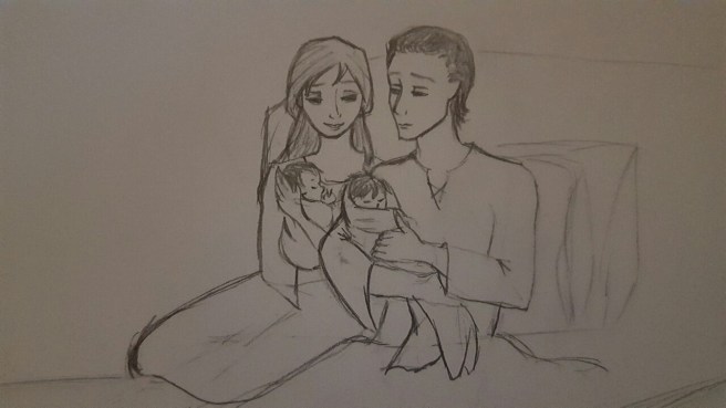 Loki, Sigyn, and the twins.