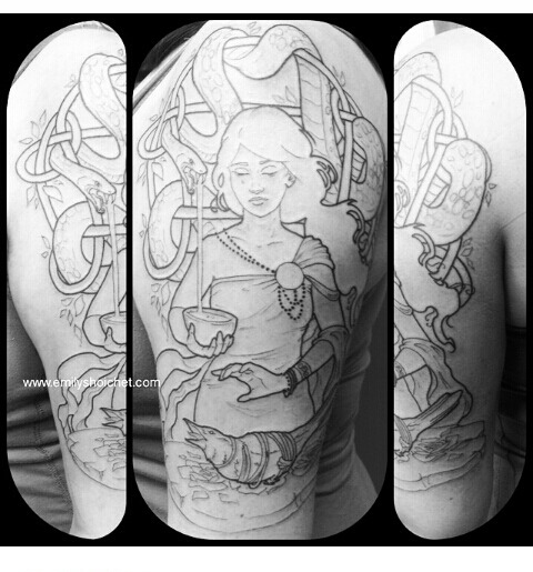 New tattoo on my arm from the amazingly talented Emily Shoichet. Details Sigyn and the punishment of loki