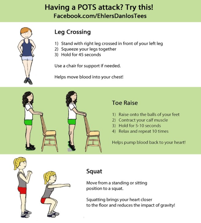 Helpful to remember when you’re having a POTS spell. The squat can be done assisted by a wall or chair. Adjust as needed.